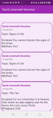 டேவிட் ஜெரமையா பக்தி ஆப் உங்கள் தினசரி ஆன்மீக துணை. ஆழமான பைபிள் போதனைகள் மூலம் உத்வேகம் பெற்று, உங்கள் ஆன்மீக வளர்ச்சிக்கு உதவுங்கள். எளிதான இடைமுகம் மற்றும் உரை-பேச்சு வசதியுடன், எங்கு சென்றாலும் தினசரி பக்திகளைப் படிக்கவும் கேட்கவும் இது உதவுகிறது.
