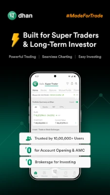 Dhan என்பது 1 மில்லியனுக்கும் அதிகமான பயனர்களால் நம்பப்படும் வர்த்தக செயலி. வேகம், மேம்பட்ட கருவிகள், நம்பகத்தன்மை மற்றும் சிறந்த வாடிக்கையாளர் ஆதரவை நாடும் வர்த்தகர்கள் மற்றும் முதலீட்டாளர்களுக்கான முதன்மையான தேர்வு.