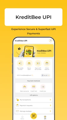 KreditBee வெறும் தனிநபர் கடன் சேவை மட்டுமல்ல. உங்களது வணிகக் கனவுகளுக்கு ரூ. 5,00,000 வரையிலும், புதிய இருசக்கர வாகனத்திற்கு ரூ. 5,00,000 வரையிலும், மேலும் ரூ. 1 கோடி வரையிலான சொத்து அடமானக் கடன்களையும் 20 ஆண்டுகள் வரை திரும்பச் செலுத்தும் கால அவகாசத்துடன் வழங்குகிறது. டிஜிட்டல் முறையில் ஆவணங்களைச் சமர்ப்பிக்கும் வசதி, எந்த மறைமுகச் செலவுகளும் இல்லாத முழு வெளிப்படைத்தன்மை, மற்றும் தகுதியைப் பொறுத்து நிமிடங்களில் கடன் ஒப்புதல் போன்ற அம்சங்கள், நிதி அணுகலை எளிதாக்குகின்றன. இவற்றுடன், KreditBee அதன் UPI சேவையின் மூலம் விரைவான, நம்பகமான மற்றும் பாதுகாப்பான பணப் பரிமாற்றங்களைச் சாத்தியமாக்குகிறது. வங்கி கணக்குடன் உங்கள் பதிவு செய்யப்பட்ட மொபைல் எண்ணை இணைப்பதன் மூலம் UPI ஐடி உருவாக்கி, ஆன்லைன் மற்றும் ஆஃப்லைன் கடைகளிலும் பணம் செலுத்தலாம், உடனடிப் பணம் அனுப்பலாம் மற்றும் பெறலாம்.