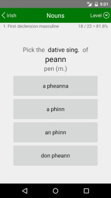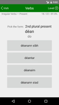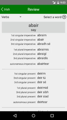 நீங்கள் கற்ற அனைத்தையும் ஒருங்கிணைக்க, ஒரு கூடுதல் தொகுதி உள்ளது. இது, சொற்களின் அர்த்தங்களை மீண்டும் சரிபார்க்கவும், அத்துடன் பெயர்ச்சொற்கள் மற்றும் வினைச்சொற்களின் இலக்கண வடிவங்களை மறுபரிசீலனை செய்யவும் ஒரு சிறந்த வாய்ப்பை வழங்குகிறது. இந்த ஒருங்கிணைந்த அணுகுமுறை, உங்கள் கற்றலை வலுப்படுத்துவதோடு மட்டுமல்லாமல், எந்த நேரத்திலும் நீங்கள் சந்தேகங்களை நிவர்த்தி செய்துகொள்ளவும் உதவுகிறது. ஐரிஷ் மொழியை முழுமையாகக் கற்றுக்கொள்ளவும், அதன் நுணுக்கங்களை திறம்படப் பயன்படுத்தவும் தேவையான அனைத்துக் கருவிகளையும் இந்தச் செயலி உங்களுக்கு வழங்குகிறது.